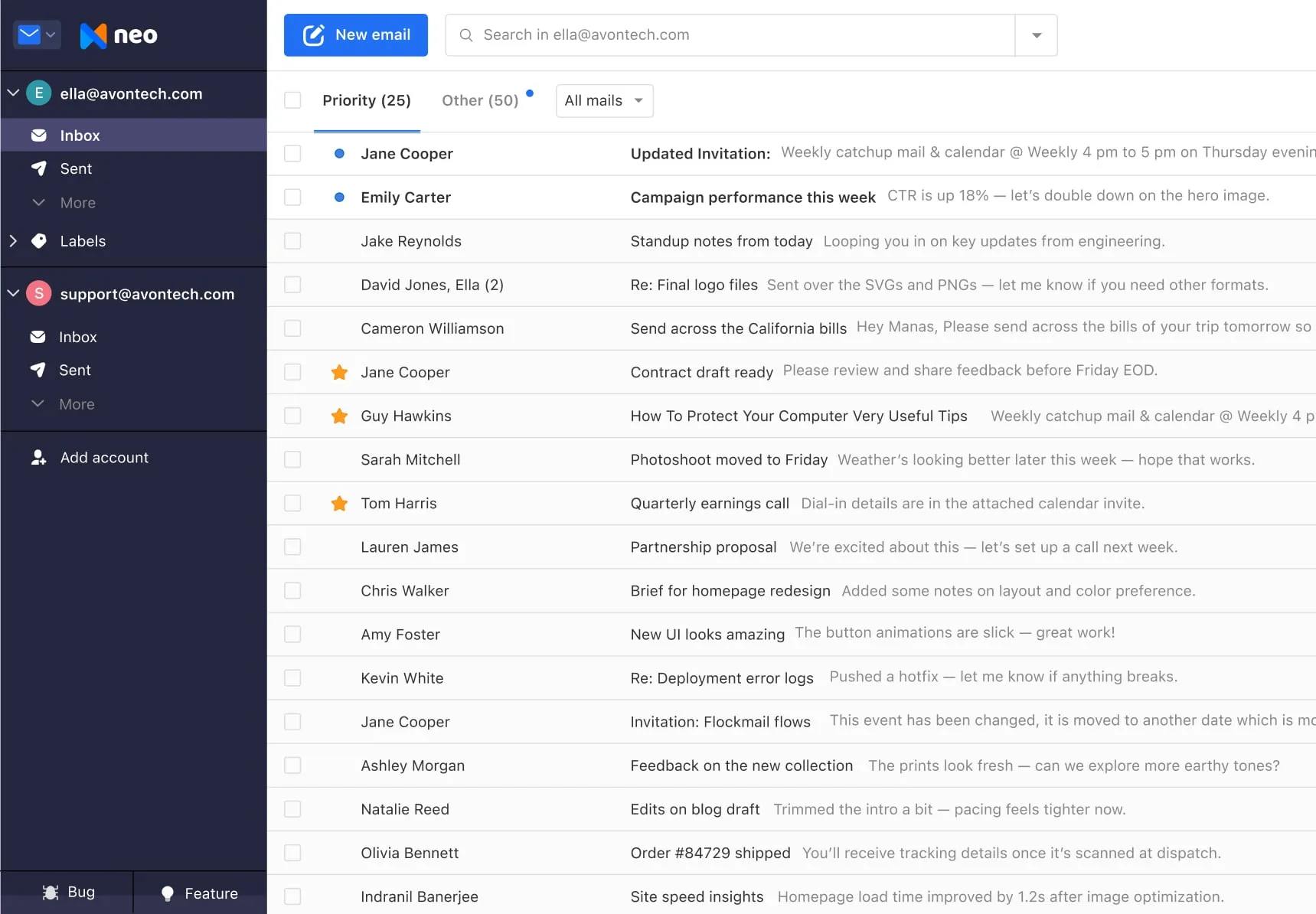 Yes. Neo comes with built-in migration tools to help you easily move existing email data to your account. If you run into trouble with the migration at any point, our dedicated support staff is available 24/7 to help you out.