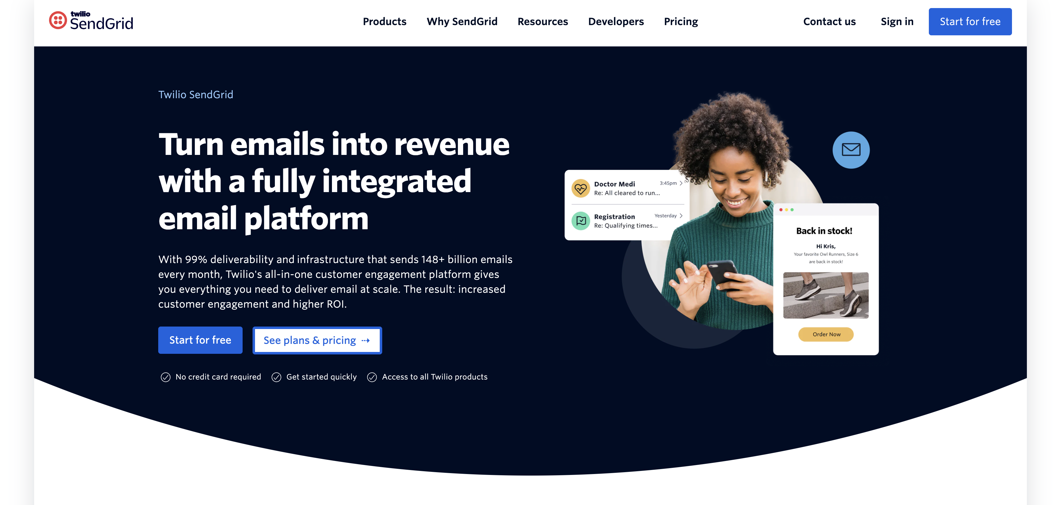 SendGrid is the enterprise workhorse proven at massive scale. To that, it offers extensive third-party integrations and API libraries for JavaScript, Ruby, Python, Go, PHP, Java, and C#. Additionally, it has separate products for transactional and marketing emails, so you can choose only what you need.