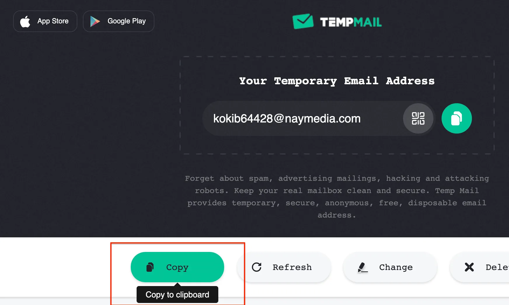 - View Your Temporary Email Address: Once on the site, you will see a temporary email address already generated for you at the top of the page. This email address is ready to use immediately.