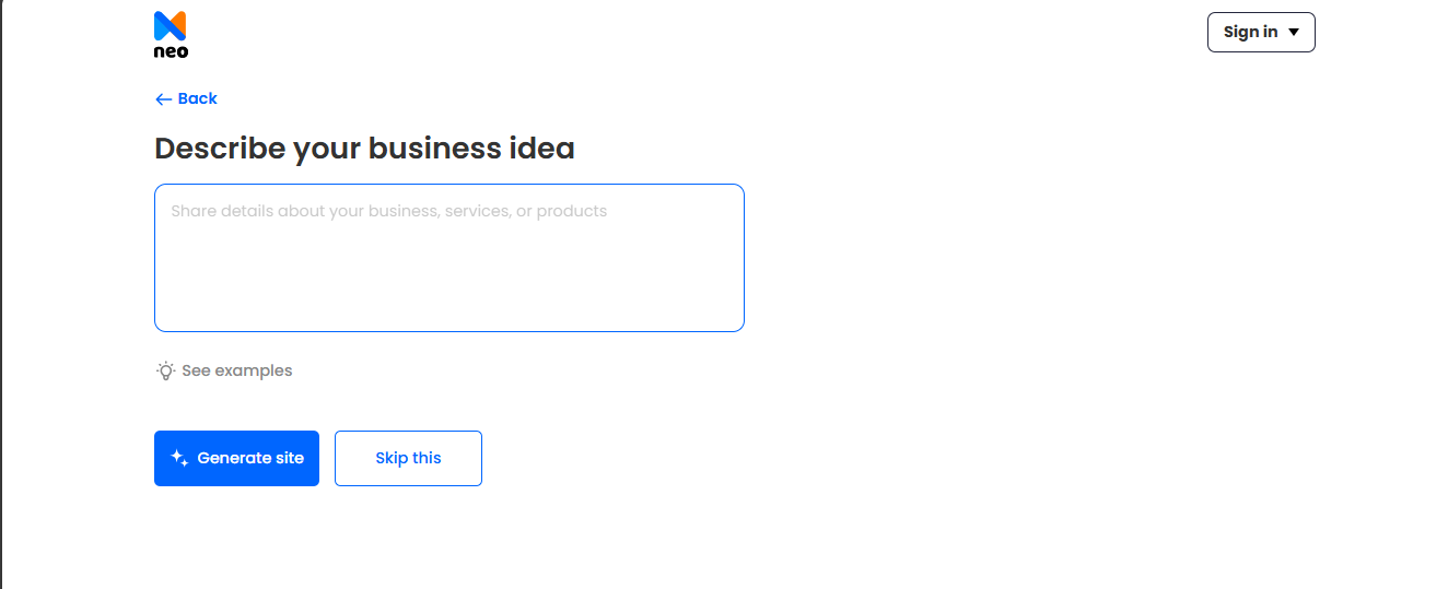 Step 3. Describe your business idea in the given section and click on the ‘Generate Site’ button to let the magic happen.