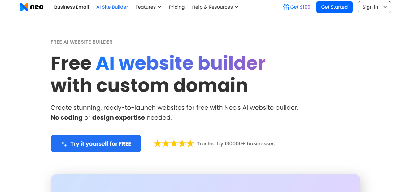 Step 1. Visit the Neo Sites and click on the Try it yourself for FREE button.