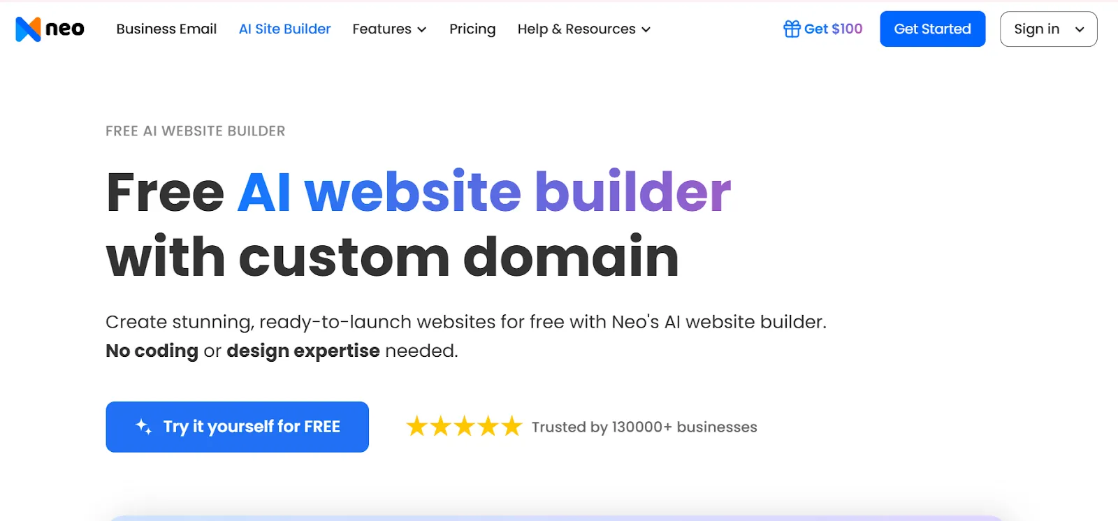 1. Visit the Neo Sites, and click on ‘Try it yourself for free’.