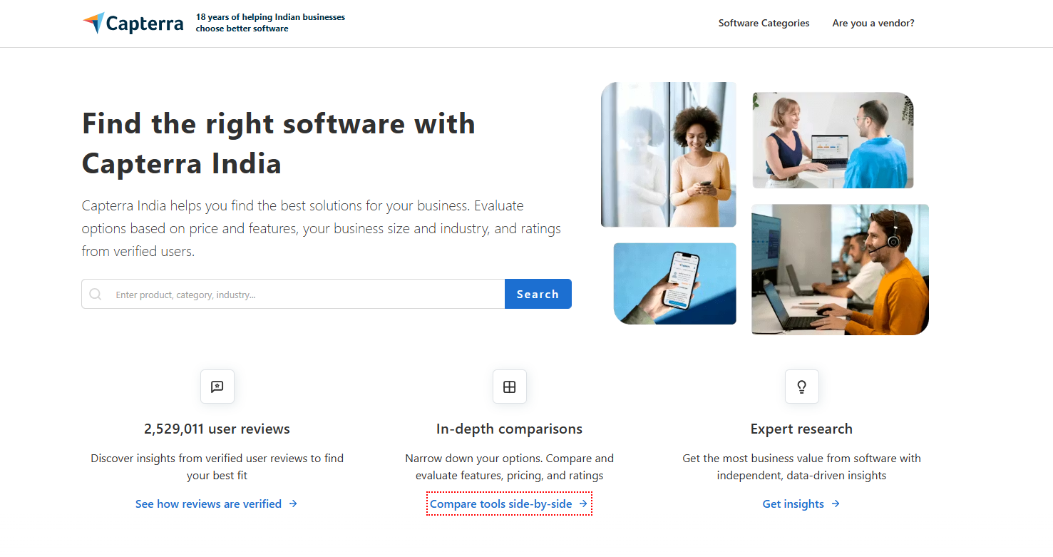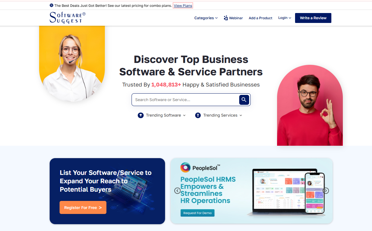 For businesses that want to focus on India, SoftwareSuggest is a low-cost way to get seen. This SaaS software marketplace focuses on India. They offer low prices and their users are always going up. It’s one of the best places to raise your visibility among SMB buyers who are looking for practical, budget-friendly solutions.