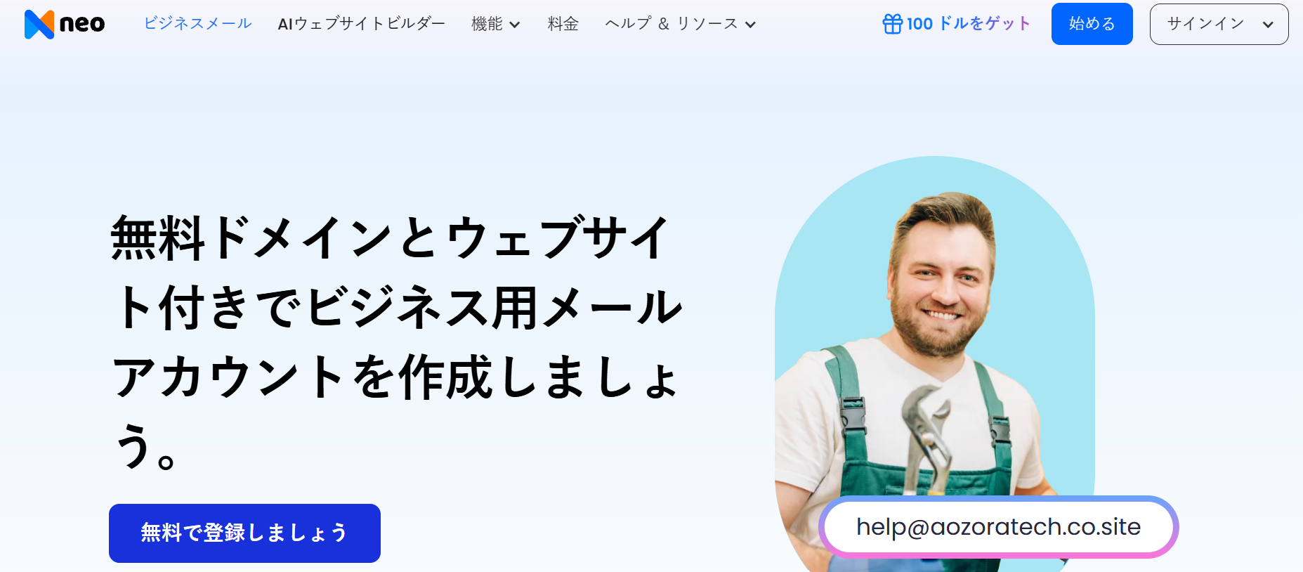 Neo Mail にアクセスし、「無料でサインアップ」をクリックします。