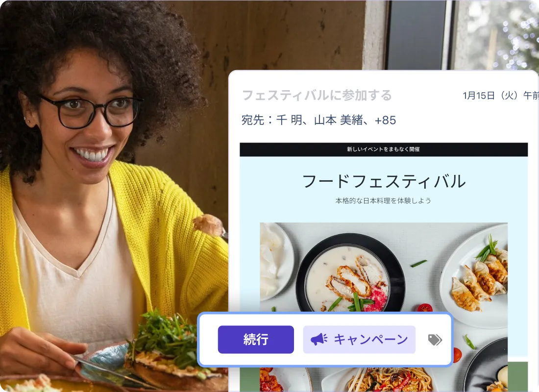カレンダーを共有し、予定を調整し、他のアプリのイベントもスムーズに同期できます。